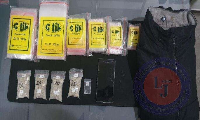 Dalam penggerebekan itu, polisi menangkap MS (28) bekerja sebagai kuli bangunan. Dan menyita 1 pocket sabu dengan berat total 0,39 gram dan 4 poket pil warna coklat berlogo GUCCI Narkotika jenis Extacy dengan rincian, 1 poket plastik isi 100 butir dengan berat 37,63 gram.