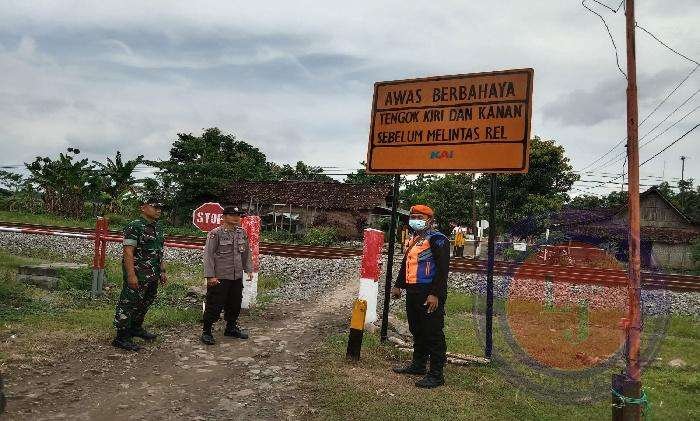 NGAWI lintasjatimnews.com – Untuk mencegah terjadinya kecelakaan dalam melintasi jalan kereta api tanpa palang pintu, Babinsa Koramil 0805/13 Kedunggalar