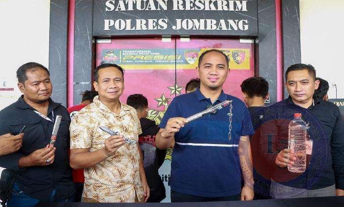 Di antaranya, sebilah sajam, ruyung, tujuh unit HP, sepeda motor, serta satu botol berisi minuman keras jenis arak. Seluruh barang bukti itu juga diamankan di Polres Jombang.