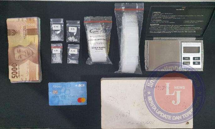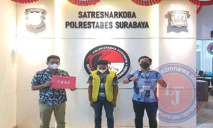 Dari lokasi penggerebekan, anggota Sat Narkoba Polrestabes Surabaya juga menyita satu timbangan elektrik, dua Pak Plastik Klip, satu kotak doss book, ATM BCA, satu unit HP dan uang Rp. 465.000.