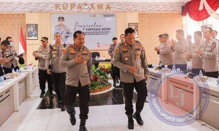 PROBOLINGGO lintasjatimnews.com – Usai memberikan bantuan air mineral untuk Masyarakat Pulau Gili Ketapang Probolinggo, Kapolda Jatim Irjen Pol. Dr. Toni Harmanto, S.H. beserta PJU Polda Jatim memberikan arahan kepada anggota Polres Probolinggo Kota di Rupatama Mapolres, Rabu (11/01/23).
