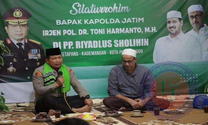 PROBOLINGGO KOTA lintasjatimnews.com – Setelah pemberian bantuan air mineral kepada masyarakat Pulau Gili Ketapang Probolinggo, Kapolda Jatim, Irjen Pol Dr. Toni Harmanto MH mengunjungi Pondok Pesantren Riyadlhus Solihin Kec. Kademangan Kota Probolinggo untuk bersilaturahim,Rabu (11/01/23).