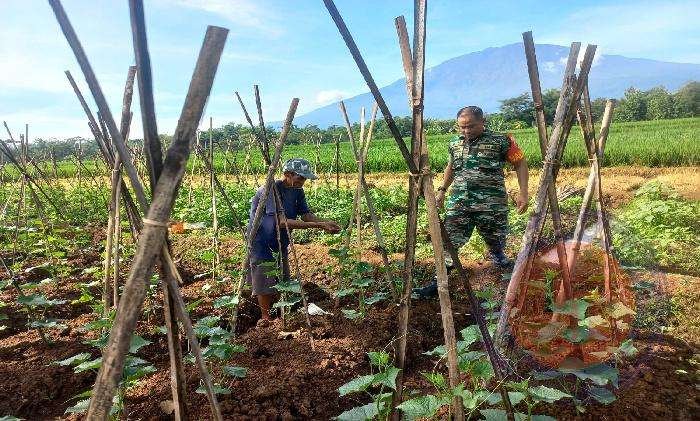 Anggota Babinsa Koramil Jogorogo Bantu Petani Budidaya Sayuran Timun