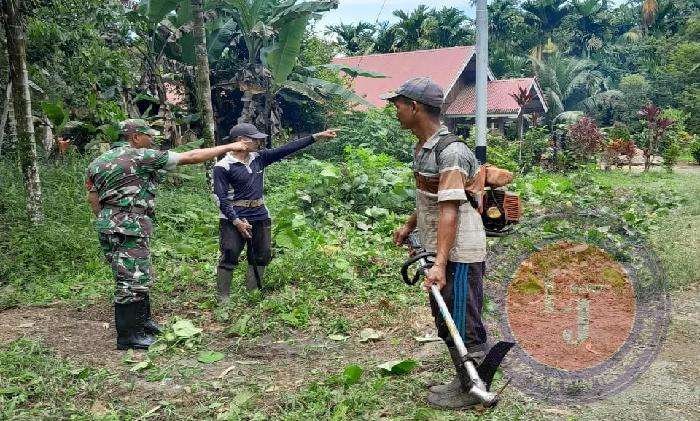 “Dengan sasaran pembersihan yaitu pemotongan rumput-rumput liar yang sudah lebat. Diharapkan dengan kerja bakti ini masyarakat akan sadar akan kebersihan dan mengajarkan mereka tentang arti dari gotong royong,” tutup Babinsa.