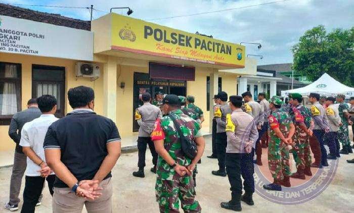 PACITAN lintasjatimnews.com – Untuk meningkatkan sinergitas antara TNI-Polri dalam menciptakan kondusifitas di wilayah, anggota Koramil 0801/01 Pacitan Kodim 0801/Pacitan, melaksanakan apel gabungan bersama pihak Kepolisian, bertempat di halaman Mapolsek Jl. W.R. Supratman No. 20 Kel. Sidoharjo Pacitan, Senin (16/01/2023).