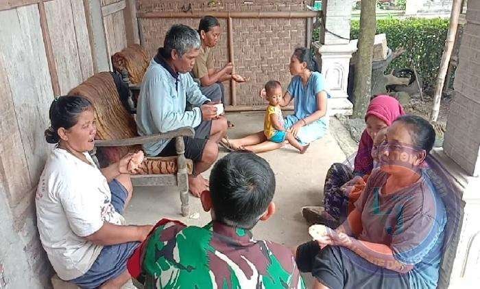 Serda Basri Babinsa Desa Jenggrik anggota Koramil 05/Kedawung Kodim 0725/Sragen melaksanakan giat Komsos dengan warga masyarakat dukuh Tempel Desa Jenggrik Kec Kedawung, Selasa ( 17/01/2023 )