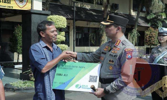 Kartu BPJS Ketenagakerjaan yang dibagikan pada saat kegiatan apel yang digelar di halaman depan Polresta Malang Kota tersebut diberikan secara gratis.