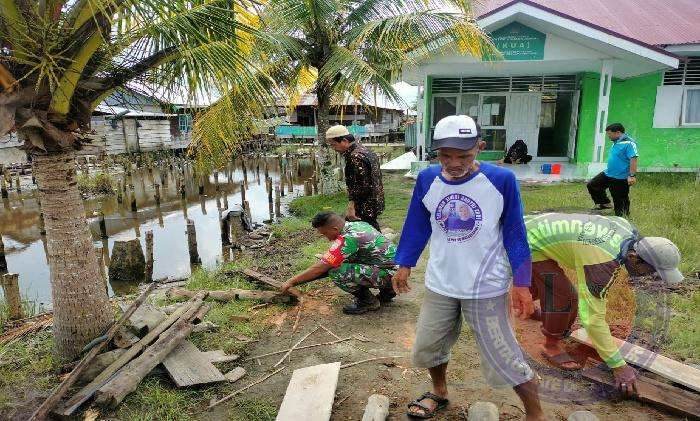 MENTAWAI lintasjatimnews.com – Babinsa Koramil 01 Sikabaluan Kodim 0319/Mentawai Serka Aditya Bersama Warga Perbaiki jembatan penyebrangan ke kantor KUA Siberut Utara Kab Kep Mentawai. 19/Januari/2023