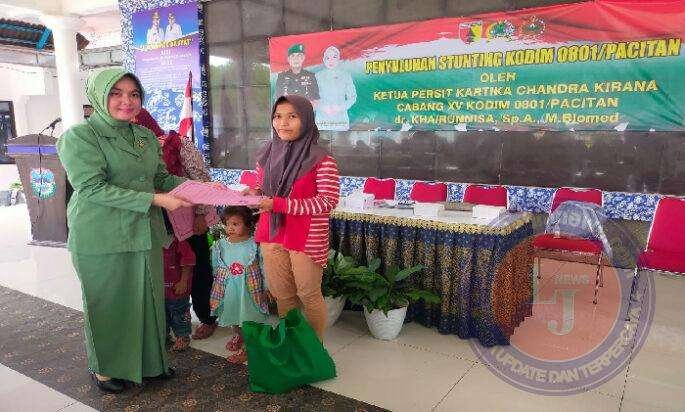 PACITAN lintasjatimnews.com – Dalam rangka upaya pencegahan dan menurunkan terhadap masalah Stunting kali ini Kodim 0801/Pacitan melakukan penyuluhan dan sosialisasi kepada masyarakat, yang di sampaikan oleh Ketua Persit Kartika Chandra Kirana Cabang XV Pacitan, dr Khairunnisa, Sp. A., M. Biomed bertempat di Kantor Kecamatan Donorojo Kab. Pacitan, Kamis (19/01/2023).