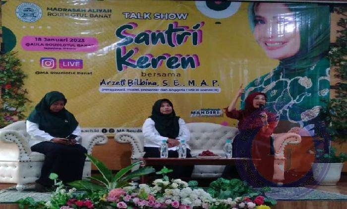 SIDOARJO lintasjatimnews.com – Madrasah Aliyah (MA) Roudlotul Banat Sepanjang, Taman kedatangan tamu istimewa kemarin, Rabu (18/01/2023). Yaitu, Arzeti Bilbina seorang publik figur dan anggota DPR RI komisi IX, yang juga mantan peragawati, model, dan presenter. Kedatangan Arzeti, panggilannya, untuk memenuhi undangan pihak sekolah yang mengadakan kegiatan Talk Show bertema: Santri Keren. Sejak pagi tampak ratusan siswa-siswi MA Roudlotul Banat sudah menunggu kehadiran Arzeti di aula sekolah.
