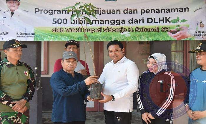 SIDOARJO lintasjatimnews.com – Program penghijauan dengan penanaman 500 bibit pohon mangga dilakukan di Desa Pabean, Kecamatan Sedati. Bibit mangga dari Dinas Lingkungan Hidup dan Kebersihan/DLHK Sidoarjo itu ditanam di berbagai lahan. Selain ditanam di lahan TKD Desa Pabean, juga ditanam di halaman rumah warga yang membutuhkan. Sabtu pagi, (21/1/2023).