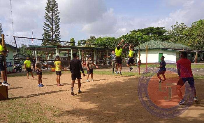 Kegiatan olahraga bola voly bersama masyarakat merupakan salah satu upaya satuan kewilayahan dalam melakukan pembinaan teritorialnya, sehingga terwujud kemanunggalan TNI dengan rakyat.