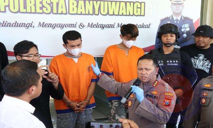 Kapolresta menegaskan, para pelaku dikenakan pasal 340 KUHP subsider pasal 338 KUHP atau pasal 365 AYAT 4 KUHP JO pasal 55 KUHP diancam dengan hukuman mati atau penjara seumur hidup ataupun paling rendah selama 20 tahun.(Humas Polresta Banyuwangi)