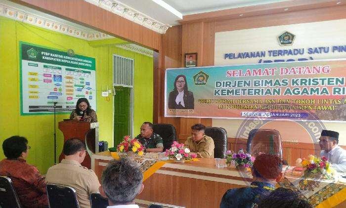 Adapun tujuan Temu Ramah Dirjen Bimas Kristen Kementrian Agama RI bersama ASN dan Tokoh Lintas Agama Kep Mentawai tersebut Plh. Pasiter Kodim 0319/Mentawai Letda Inf James Sibarani mengatakan agar mempererat kerukunan umat beragama dalam kehidupan bermasyarakat di Kab Kep Mentawai yang aman, rukun dan kondusif,