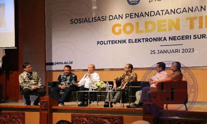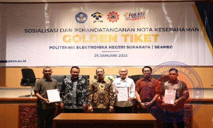 “Alhamdulillah, kami berkesempatan bisa mengembangkan jejaring melalui kerjasama yang hari ini kita sepakati dengan 3 Dinas Pendidikan yang salah satunya melalui program Golden Ticket, Pendidikan Jarak Jauh Program D3 Teknik Informatika, yang ijin penyelenggaraannya sudah sejak 2017” kata Aliridho Barakbah, Ph.D Direktur PENS.
