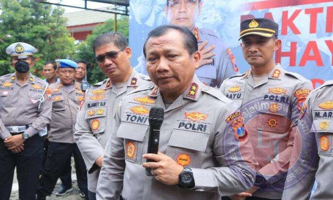 PASURUAN lintasjatimnews.com – Kapolda Jawa Timur, Irjen Pol Dr.Toni Harmanto, Waka Polda Jatim Brigjen Pol Slamet Hadi Supraptoyo, didampingi Pejabat Utama (PJU) Polda Jatim, Jumat (27/1/2023) siang, kembali melaksanakan ‘Jumat Curhat’ Bhakti Kesehatan Bhayangkara.