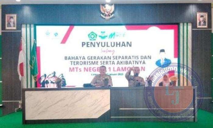 Kegiatan Penyuluhan Bahaya Gerakan Separatis dan Terorisme diikuti para sisw di MTs Negeri 1 Lamongan. Mereka adalah siswa pilihan di masing masing kelasnya