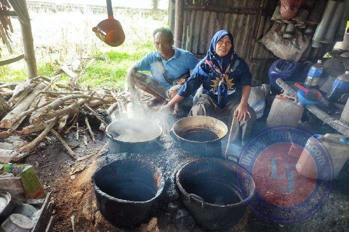 Lanjutnya, gula merah tersebut dipindahkan kembali ke wadah lain untuk diaduk secara perlahan sampai mengental selama 30 menit sebelum dimasukan cetakan. Proses seperti itu juga bergantung cuaca, kalau musim hujan seperti saat ini, pembuatan gula sedikit rumit karena tidak bisa mengental secara cepat, kalau musim panas gulanya mudah untuk mengental. Ucap Ibu Zakiyah.
