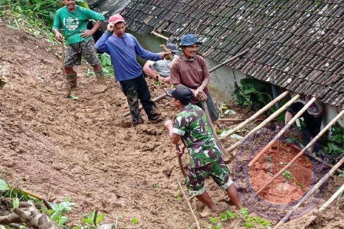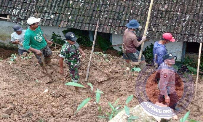 Menyikapi hal tersebut, kemudian Serka Widiyanto Babinsa Koramil 0801/05 Nawangan, Kodim 0801/Pacitan bergerak cepat melakukan pengecekan di lokasi kejadian, lalu berkoordinasi dengan Perangkat Desa serta mengajak masyarakat sekitar melakukan pembersihan material longsor secara gotong royong.