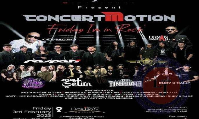 BANDUNG lintasjatimnews.com – Eksistensi rock kembali bergairah pada awal tahun 2023. Aliran musik cadas tersebut lagi viral-viralnya saat ini, terutama pada kalangan milenial. Raspati Management menyambut situasi tersebut dengan menggelar Concertmotion bertajuk “Friday Im in Rock” pada Jumat, 3 Februari 2023 pukul 18.00 – 22.30 WIB di Horison Ultima Hotel, Bandung.