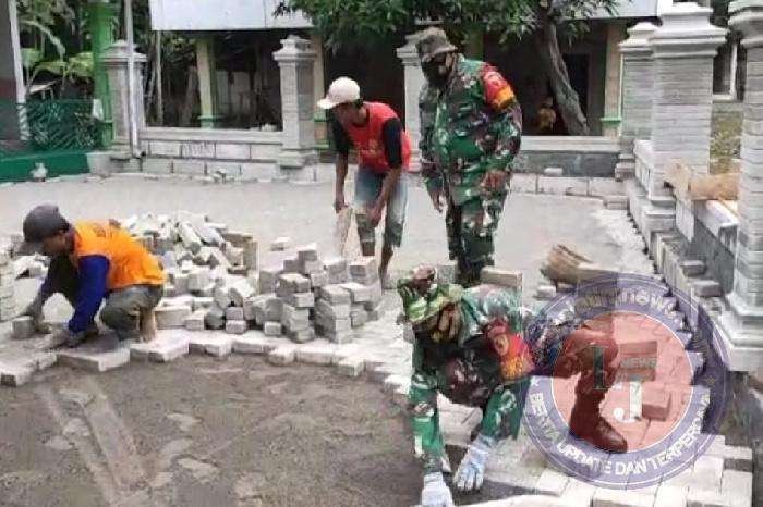 Dengan semangat dan jiwa kekeluargaan, Anggota Koramil Paron bersama warga sangat bersemangat melaksanakan kegiatan gotong royong pemasangan paving di halaman Masjid Al Amin ini.