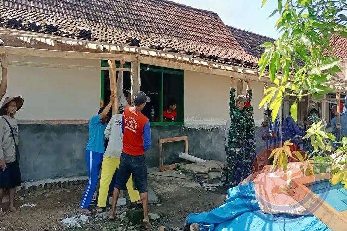 NGAWI lintasjatimnews.com – Sebagai wujud kepedulian TNI dalam meringankan dan mengatasi kesulitan rakyat di sekelilingnya, Anggota Koramil 0805/12 Mantingan, Kodim 0805/Ngawi membantu dan bergotong royong memperbaiki rumah milik warga yang tinggal di Dsn. Ngelo RT. 02/01 Desa Jatimulyo Kecamatan Mantingan, Minggu (05/02/2023).