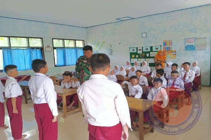 “Pada era globalisasi saat ini, generasi muda terutama pelajar sangat rentan sekali terhadap pengaruh pergaulan yang tidak sehat, bahkan secara perlahan nilai-nilai kebangsaan dan rasa cinta tanah air sudah mulai luntur sehingga harus dibentengi mulai sejak usia dini dengan hal-hal yang positif”, kata Babinsa kepada para siswa.