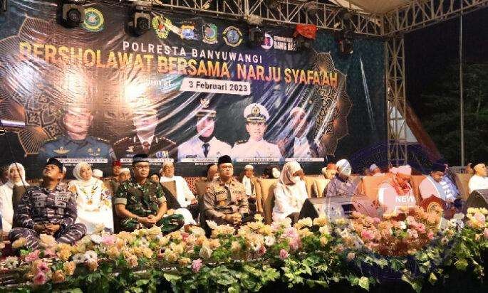 BANYUWANGI lintasjatimnews – Ribuan orang mengikuti sholawat bersama yang digelar Polresta Banyuwangi.
