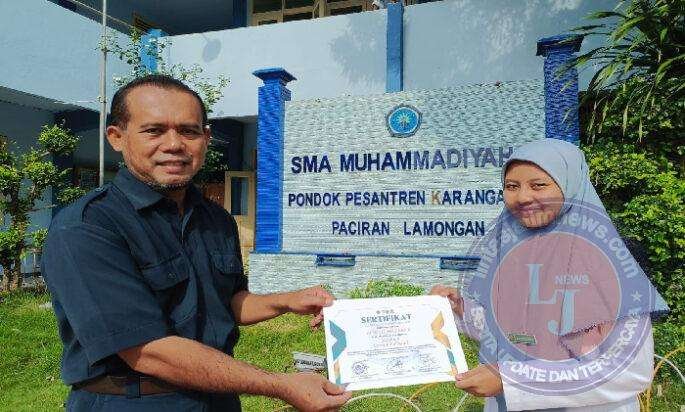 LAMONGAN lintasjatimnews.com – Siswi SMA Muhammadiyah 6 Pondok Pesantren Karangasem Paciran meraih juara 3 Kaligrafi Tinggkat Nasional dalam Lomba Olimpiade Qur’ani 6 yang diselenggarakan Fakultas Agama Islam (FAI) Universitas Ahmad Dahlan (UAD) Yogyakarta, Ahad (5/2/2023),
