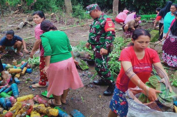Babinsa Serka Marsudi bersama dengan ibu-ibu PKK melaksanakan kegiatan sosialisasi tentang kebersihan lingkungan yang ada di wilayah binaannya tersebut, karena dengan adanya lingkungan yang bersih kesehatan warga akan lebih terjaga.