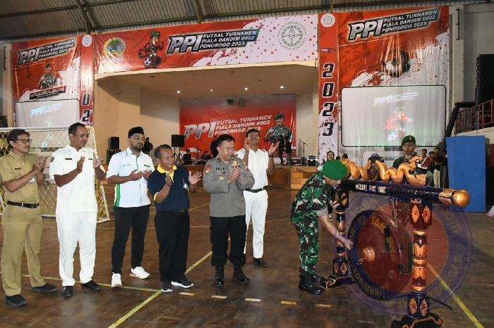 PONOROGO lintasjatimnews.com – Turnamen Futsal Piala Dandim 0802/Ponorogo tahun 2023 bekerjasama dengan Purna Paskibraka Indonesia (PPI) kemarin resmi dibuka. Upacara pembukaan digelar di GOR Singodimedjo, jalan Pramuka, Kelurahan Bangunsari, Kabupaten Ponorogo, Selasa (07/02/2023).