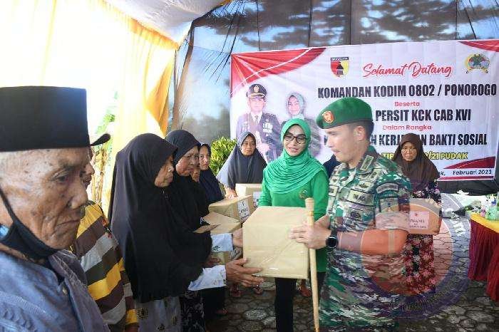 Tiba di lokasi, Dandim 08092/Ponorogo beserta rombongan disambut oleh seluruh anggota baik prajurit maupun anggota Persit Koramil Tipe B 0802/21 Pudak untuk selanjutnya melakukan beberapa rangkaian kegiatan termasuk berbagi sembako kepada warga..