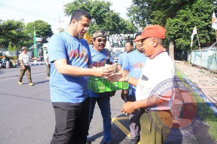 PROBOLINGGO lintasjatimnews.com – Wali Kota Probolinggo Hadi Zainal Abidin bersama sejumlah wartawan membagikan nasi bungkus kepada sejumlah masyarakat yang melintas di depan Kantor Wali Kota Probolinggo