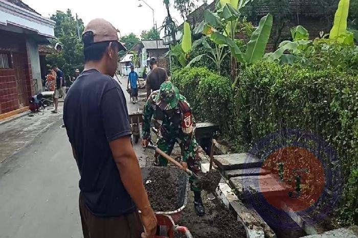 Jaga Kebersihan Lingkungan, Babinsa Kodim 0802/Ponorogo Kerja Bakti Bersihkan Selokan Air