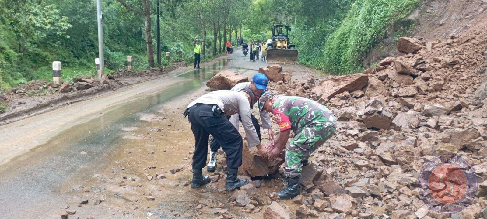 Saat dikonfirmasi awak media di lapangan, Babinsa Koramil 0801/04 Tegalombo, membenarkan bahwa telah terjadi tanah longsor di wilayah teritorialnya, akibat hujan dengan intensitas tinggi, sehingga menutup jalan utama Pacitan – Ponorogo dan arus lalu lintas sempat terganggu.