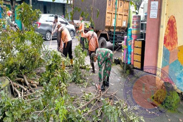 SURAKARTA lintasjatimnews.com – Guna mengantisipasi ranting pohon roboh di musim penghujan Babinsa Kelurahan Nusukan,Koramil 02/Banjarsari,Kodim 0735/Surakarta,Serka M.Nasirin Dldan Serka Supadmo melaksanakan kegiatan kerja bakti bersama Dinas Lingkungan Hidup ( DLH) Surakarta memotong ranting pohon yang rimbun yang berada di Jalan Kapten Pier Tendean Kelurahan Nusukan Kecamatan Banjarsari,Selasa (14/2/2023).