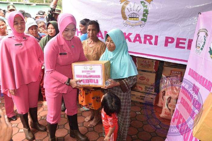 “Ini bantuan dari Yayasan Kemala Bhayangkari, semoga bisa sedikit meringankan beban warga yang terdampak banjir di sini,” ungkap Ny. Yesika usai menyerahkan beberapa paket sembako secara simbolis kepada warga, Senin (13/2/2023).