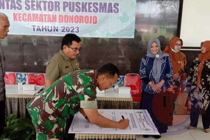 Saat memberikan sambutannya pada acara tersebut, Komandan Koramil 0801/11 Donorojo menyampaikan bahwa kegiatan tersebut sebagai upaya bersama dalam meningkatkan kerjasama tim, memantau cakupan pelayanan puskesmas serta membina peran serta masyarakat secara terpadu agar dapat meningkatkan fungsi puskesmas di wilayah.