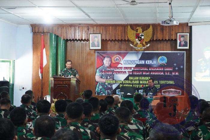 KULON PROGO lintasjatimnews.com – Komandan Pusat Teritorial Angakatan Darat Letnan Jenderal TNI Teguh Muji Angkasa, S.E., M.M., membuka secara resmi Bimnis dan Sosialisasi Manajemen Teritorial, di Aula Makodim 0731/Kulon Progo, Rabu (15/02/23).