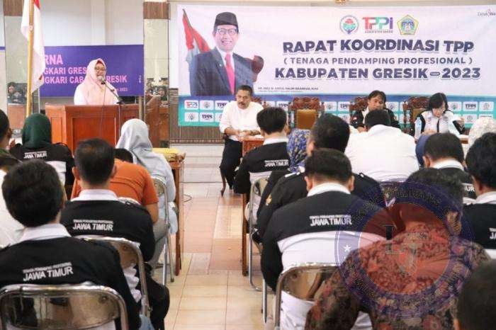 GRESIK lintasjatimnews.com – Tenaga Pendamping Profesional (TPP) Kabupaten Gresik, menggelar rapat koordinasi (Rakor) bersama Pemerintah Daerah. Diikuti sebanyak 124 TPP, kegiatan dilaksanakan di Putri Mijil Pendopo Bupati Gresik, Rabu 15/2/2023