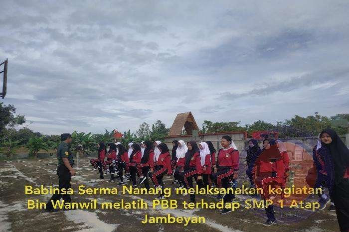 SRAGEN lintasjatimnews.com – Pelatihan Peraturan Baris Berbaris (PBB) sebagai wujud latihan fisik guna membentuk sikap, kedisiplinan, kekompakan, loyalitas dan kepedulian, rasa persatuan dan rasa tanggung jawab sejak dini, untuk itu Serma Nanang Setiawan Babinsa Desa Jambeyan Koramil 08/Sambirejo Kodim 0725/Sragen melaksanakan Giat Bin Wanwil dengan melatih PBB Siswi SMP N 1 Atap Desa Jambeyan, Kamis ( 16/02/2023 )