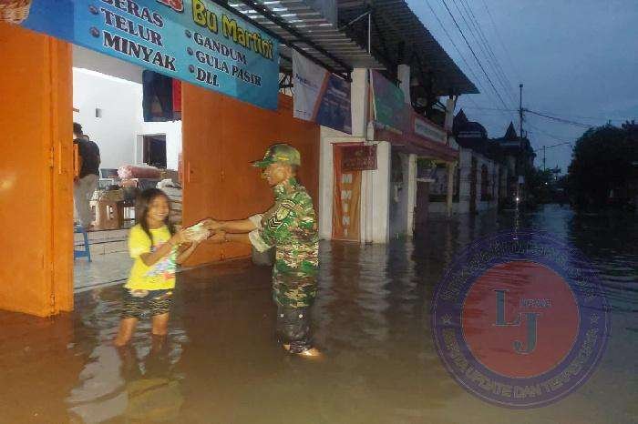 Babinsa Joyotakan Distribusikan Makan malam Korban Banjir