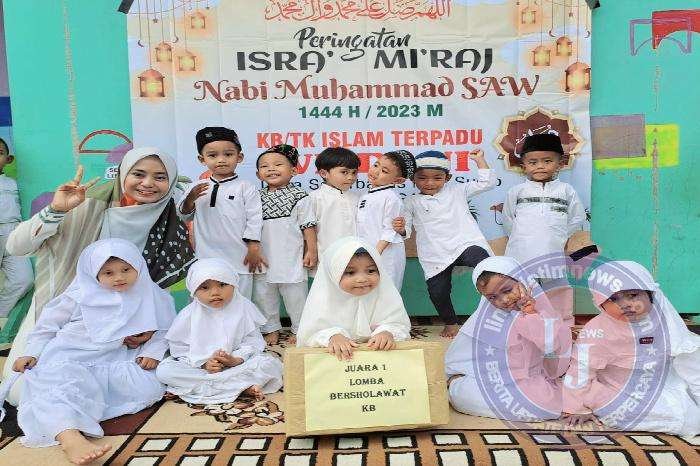 LAMONGAN Lintasjatimnews – KB dan TK Islam Terpadu Wildani Sugio mengakhiri rangkaian acara peringatan Isra’ Mi’raj Nabi Muhammad SAW tahun 1444 Hijriyah yang diadakan, Jum’at (17/2/2023) dengan meriah.