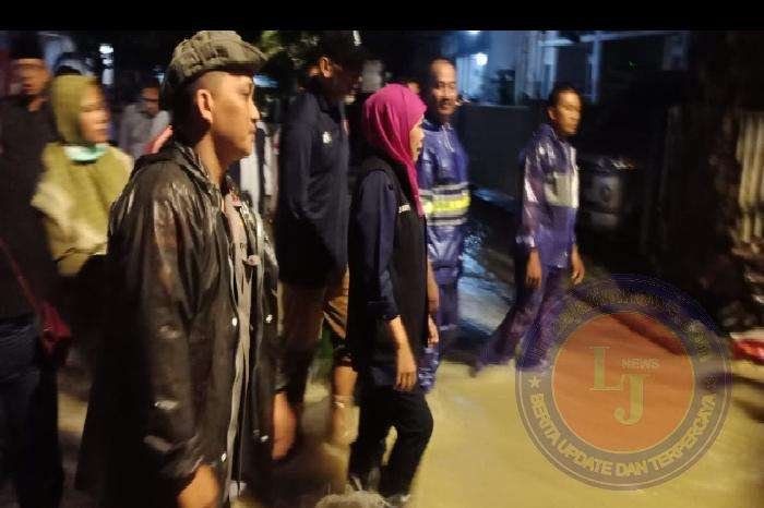 Kapolsek driyorejo Kompol Herry Moriyanto Tampake mendampingi Gubernur meninjau langsung lokasi banjir di wilayah desa mojosarirejo. Rabu (22/2/23) 01:00 dini hari.