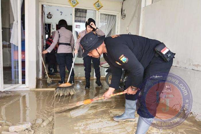 “Untuk membantu masyarakat yang terdampak banjir, personel Sat Samapta langsung diterjunkan membantu membersihkan rumah warga dari lumpur akibat terdampak banjir yang terjadi Selasa kemarin,” jelas AKP Sugeng.