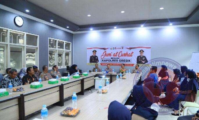 Kapolres Gresik menyampaikan bahwa kegiatan Jumat Curhat adalah agenda rutin yang dilaksanakan oleh Polres Gresik bersama Polsek jajaran.