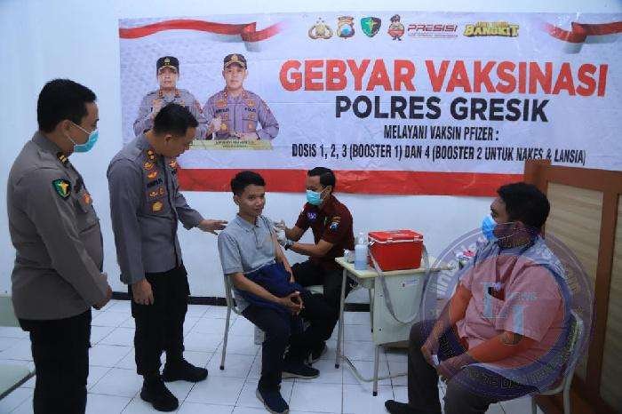 Gebyar Vaksinasi Polres Gresik menjangkau seluruh lapisan masyarakat. Kegiatan ini terus digencarkan untuk memutus mata rantai penyebaran Covid-19.