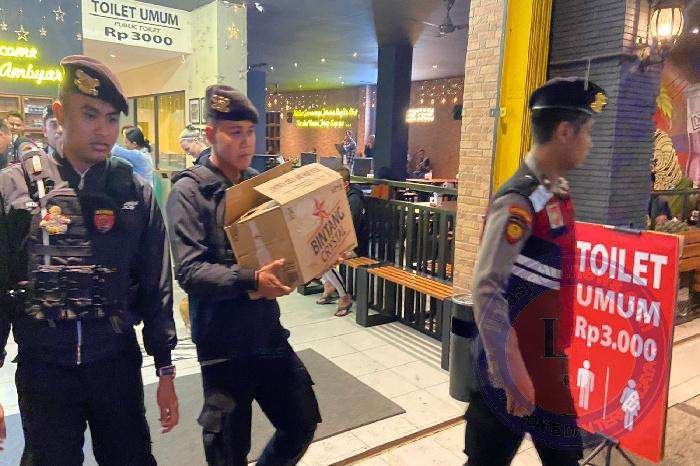 Kompol Syabain, S.H. bersama Ipda Rudik Saiful, Ipda Andi Kusuma, dan Unit Patroli Tombak 3 serta Unit Perintis 3 yang bertugas dalam patroli melaksanakan penindakan tipiring di kios-kios yang didapati menjual minuman beralkohol.