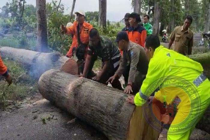 Setibanya di lokasi, petugas gotong-royong mengevakuasi pohon tumbang dengan gergaji mesin. Selang beberapa jam, jalan antar desa itu bisa kembali dilalui warga.