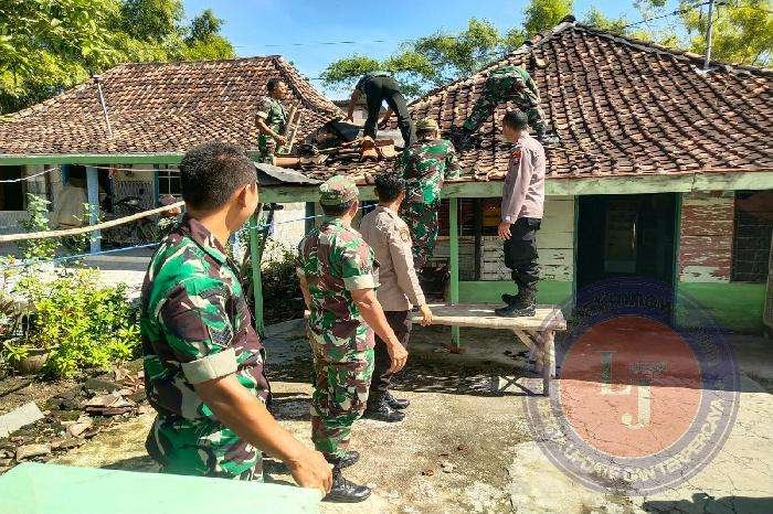 GRESIK lintasjatimnews.com – Aparat gabungan dari Polsek Benjeng dan Koramil Benjeng (TNI-Polri) dipimpin langsung Kapolsek Benjeng Iptu Alimin Tunggal dan Ndanramil Benjeng Kapten. Inf Mashudi hingga saat ini Rabu (1/3/2023) masih melakukan perbaikan atap rumah warga yang rusak akibat terjangan angin puting beliung yang terjadi pada Selasa (28/2/2023) sekitar pukul 19.00 wib.